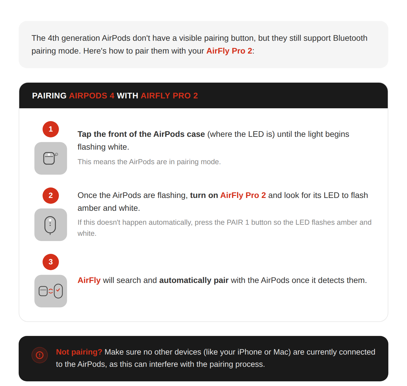 How do I pair my AirPods (4th generation) with AirFly Pro 2? There's no pairing button on the case.Updated 2 days ago